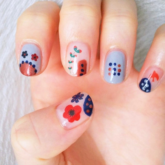 采用的裸色做主色調,配合小花和銀色閃粉甲作為輔助設計,非常好看的一款喲~