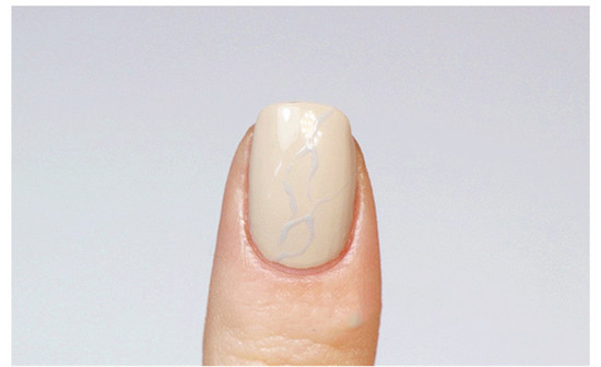 第二步:用勾線筆沾取淺灰色加油在甲面畫出大理石紋。